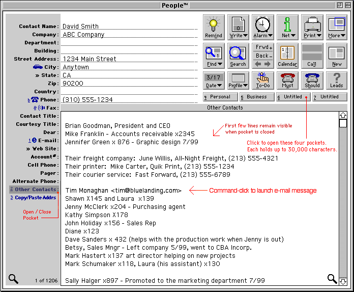 Pop-up buttons for quick access to features:
