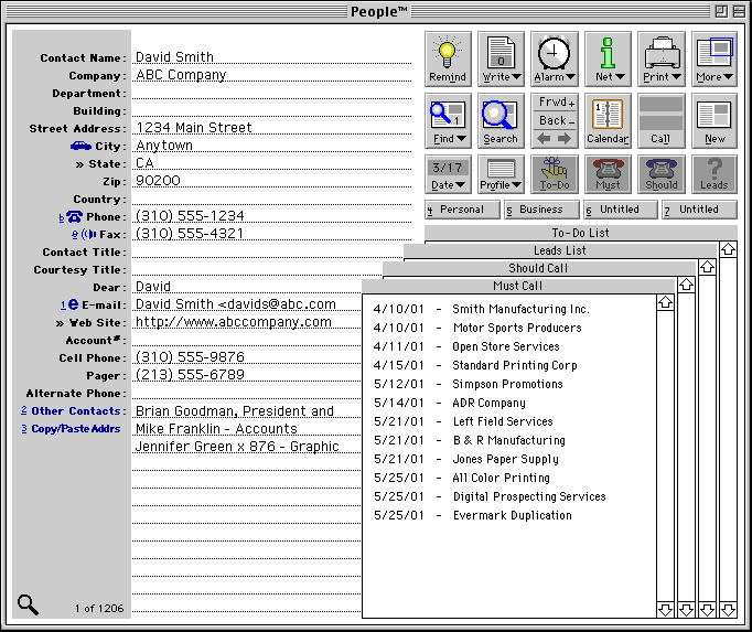 To-Do, Must Call, Should Call and Leads list display: