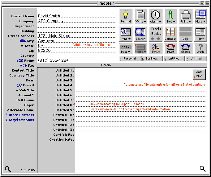 Profile area with powerful Auto Input feature: